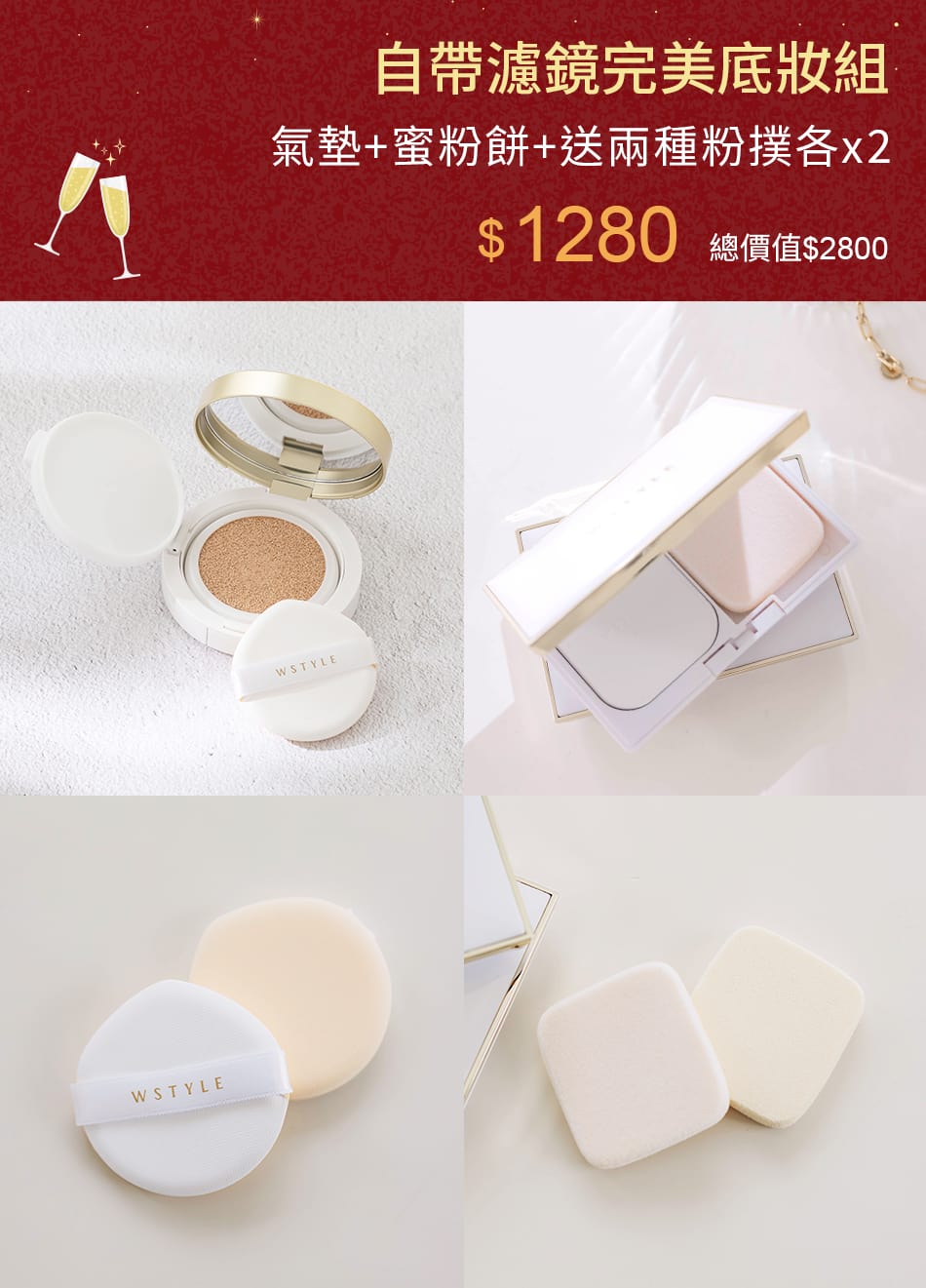 自帶濾鏡完美底妝組-氣墊+蜜粉餅