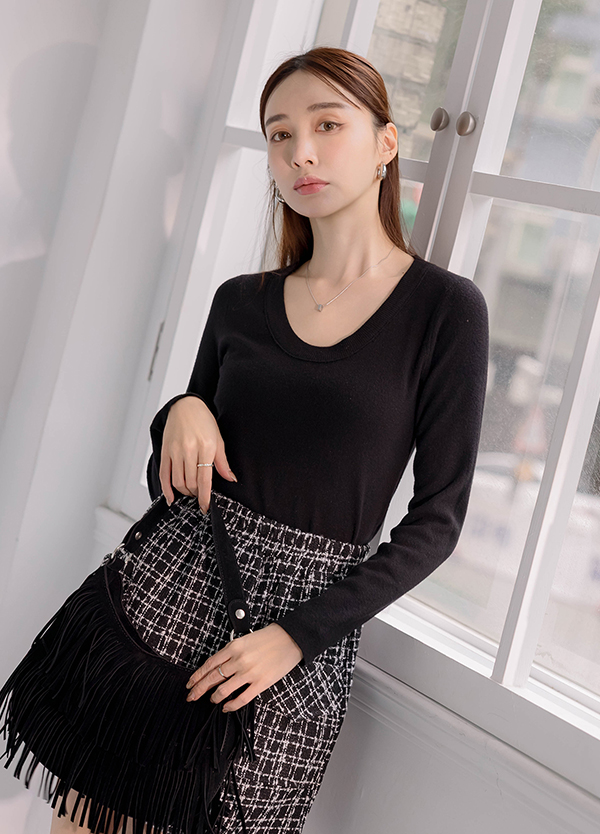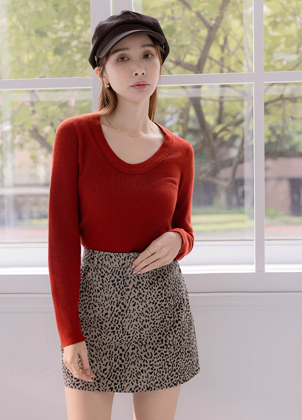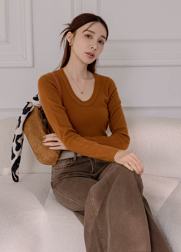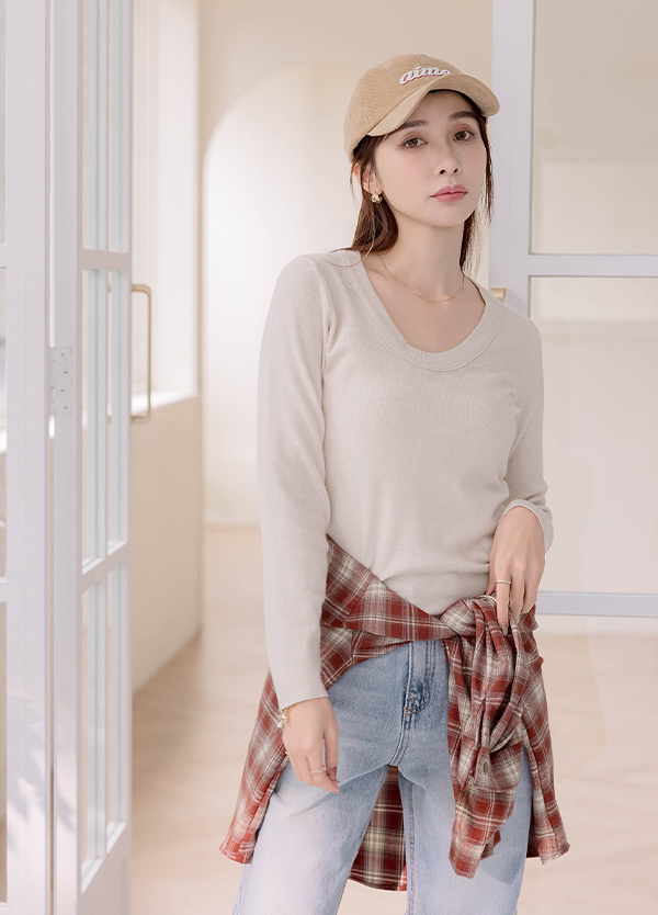 U領修身針織上衣