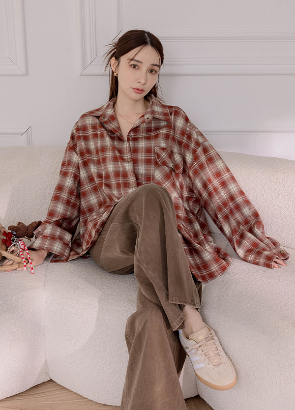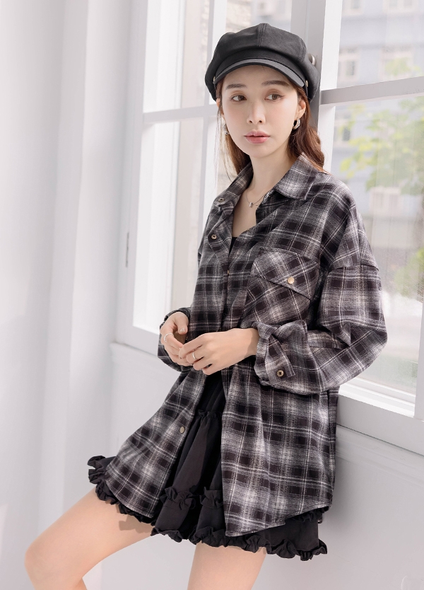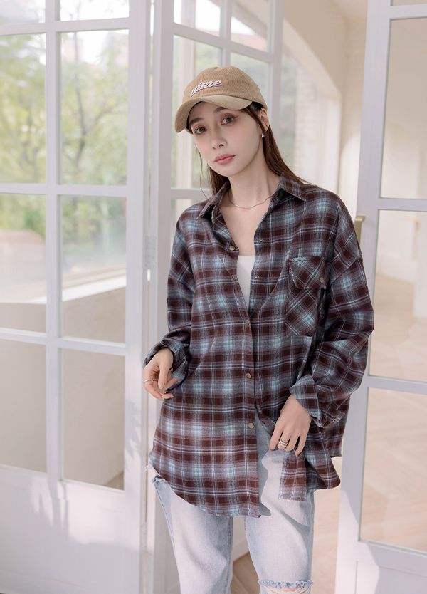 格紋色系毛絨襯衫
