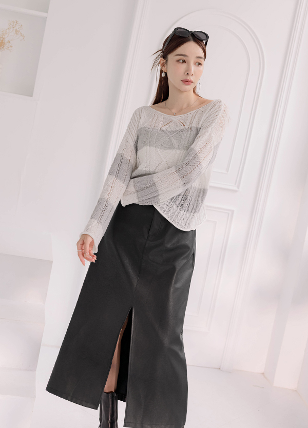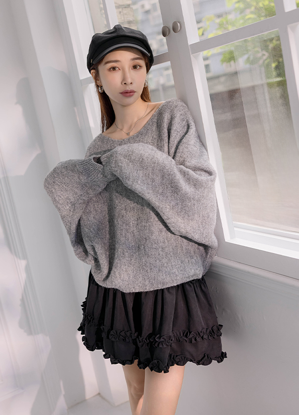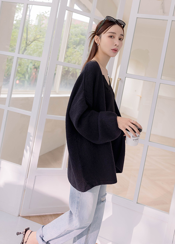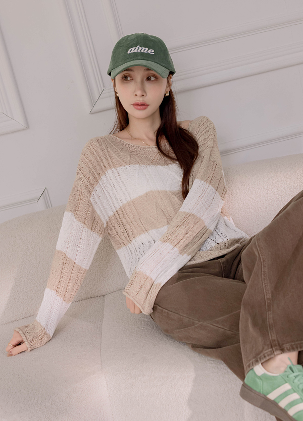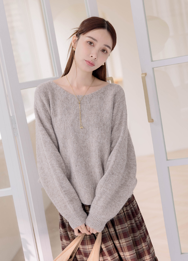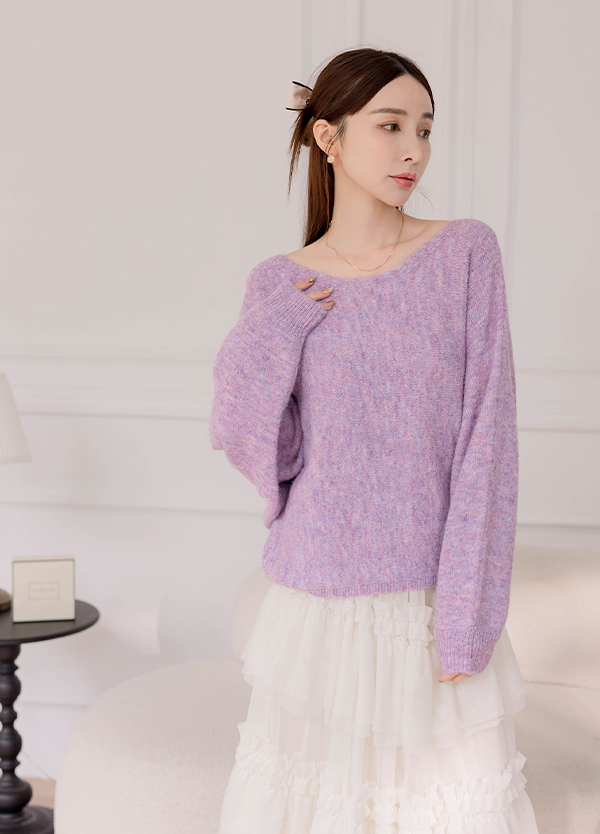 混線感寬領毛衣