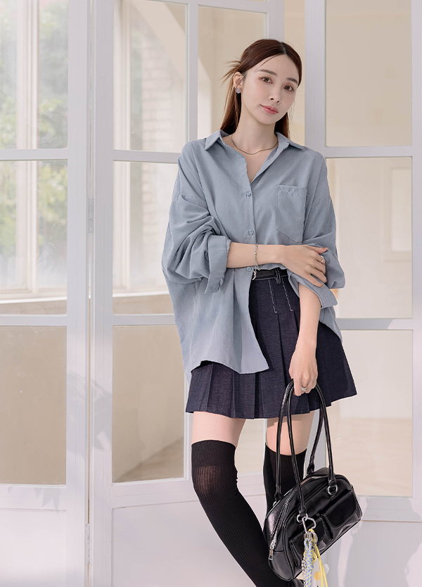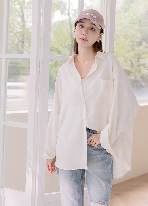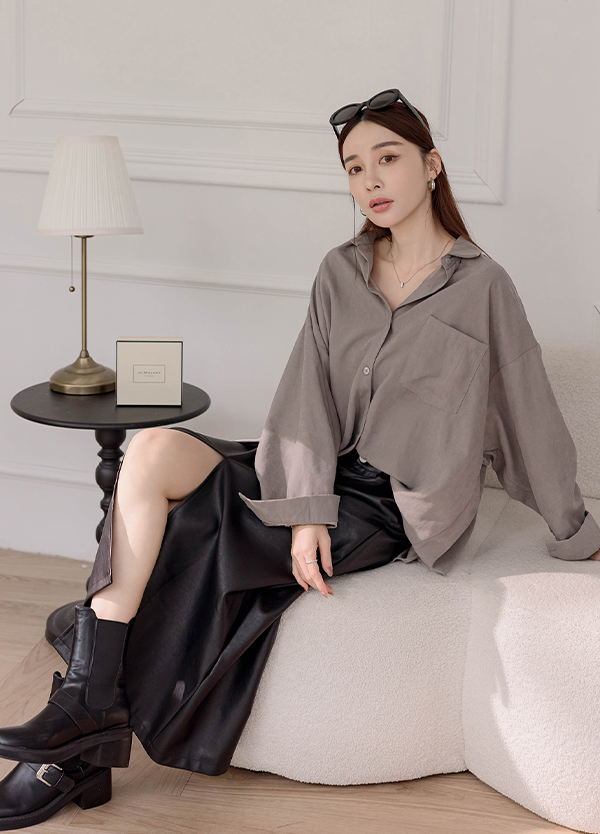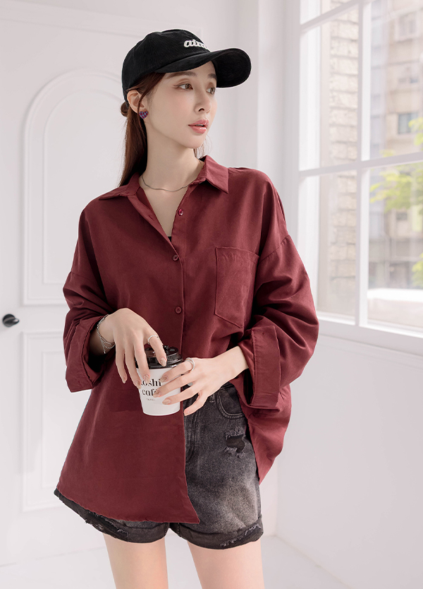 蜜桃絨長版襯衫