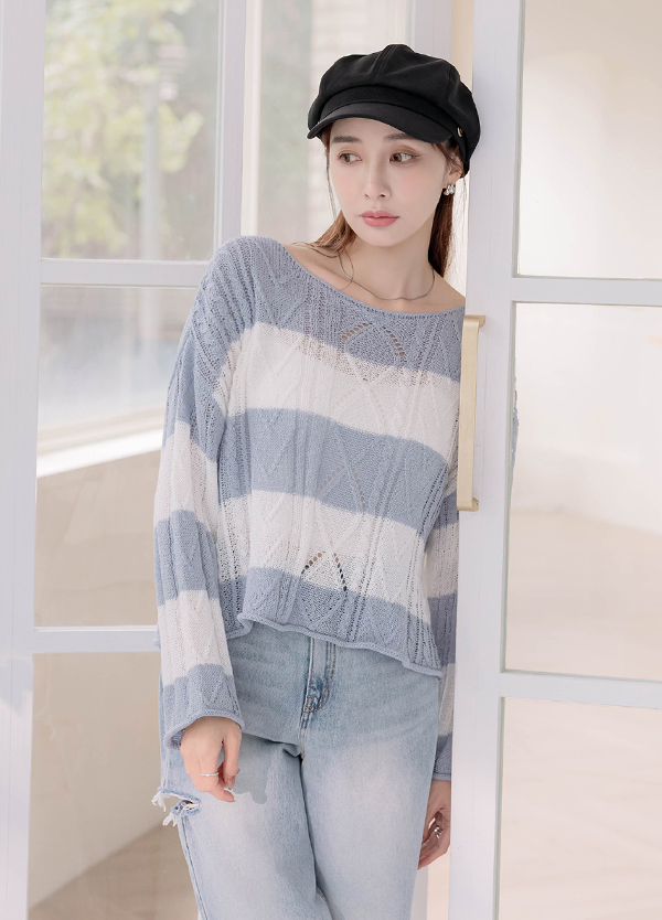 菱格橫紋針織上衣