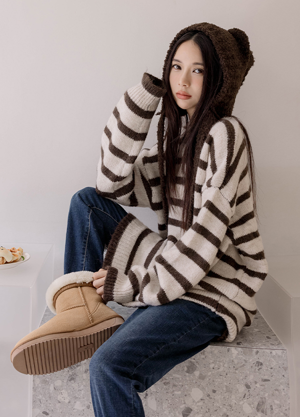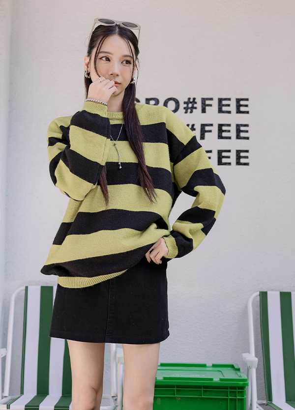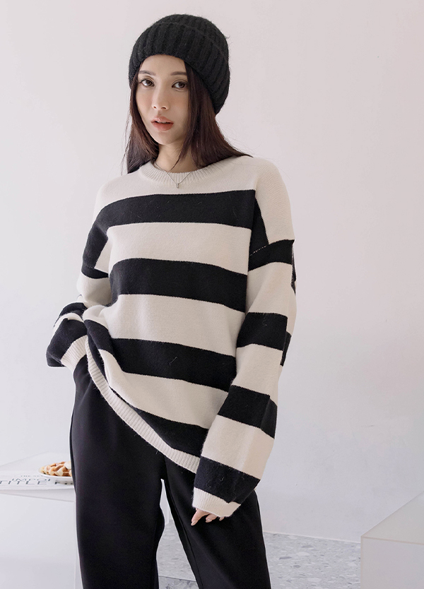 韓感寬橫紋毛衣
