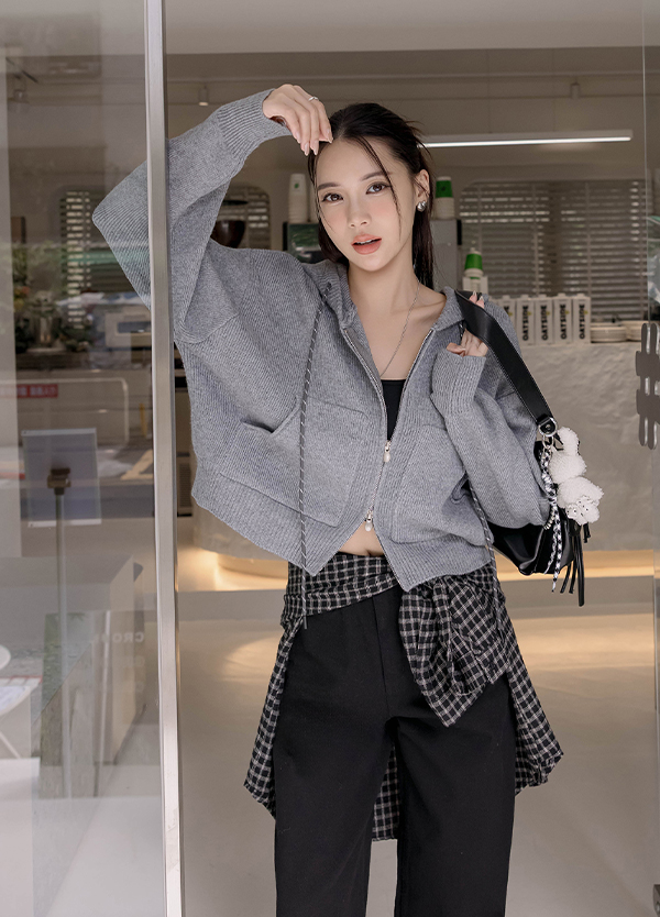 MIU風連帽毛衣外套