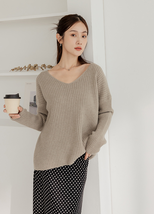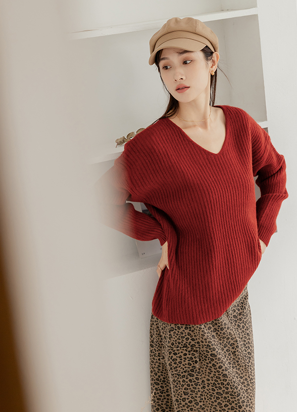 雕洞V領慵懶毛衣