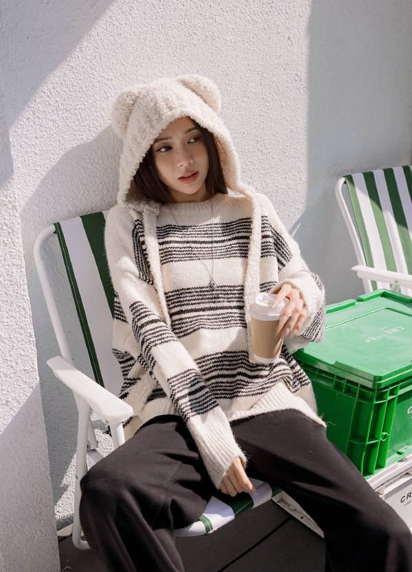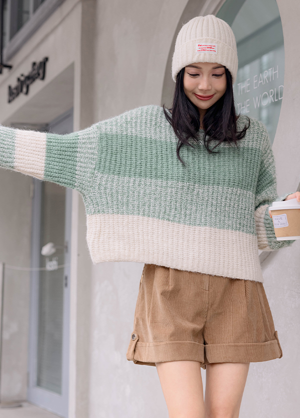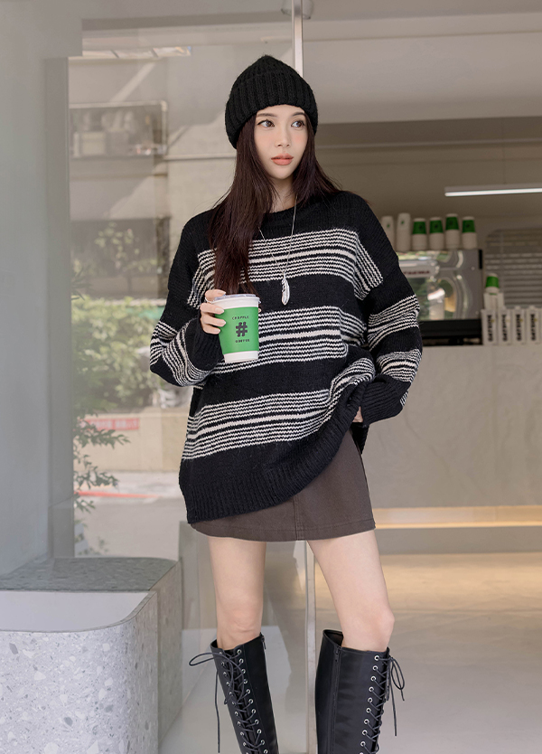 韓感寬橫紋毛衣