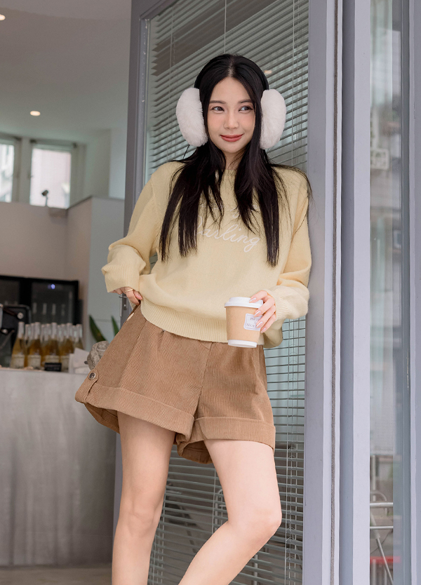 甜美色捲邊毛衣