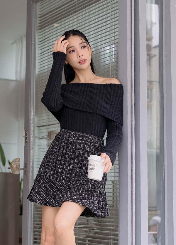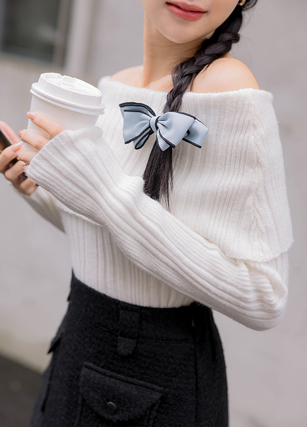 一字領露肩毛衣
