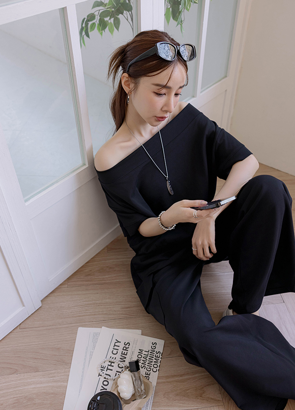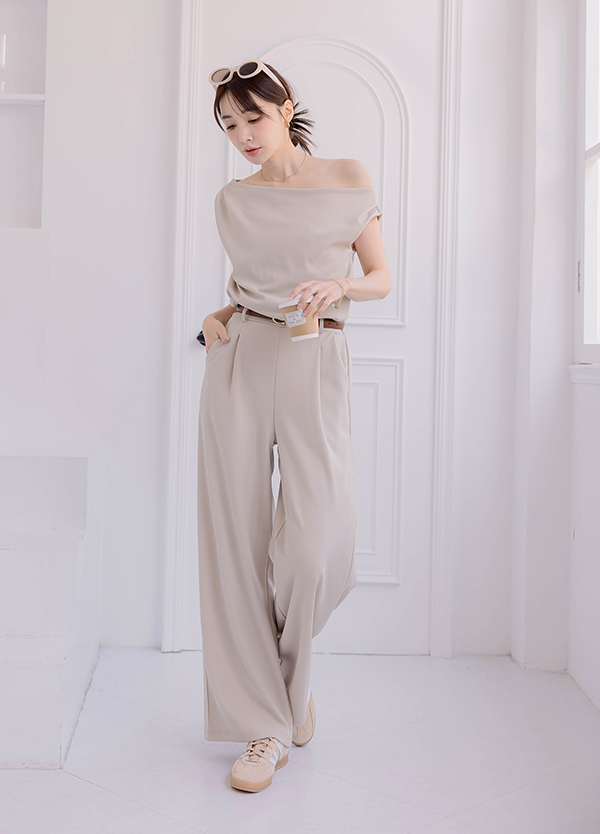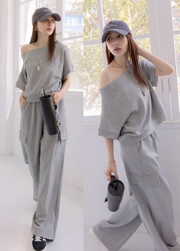 斜肩穿棉質套裝