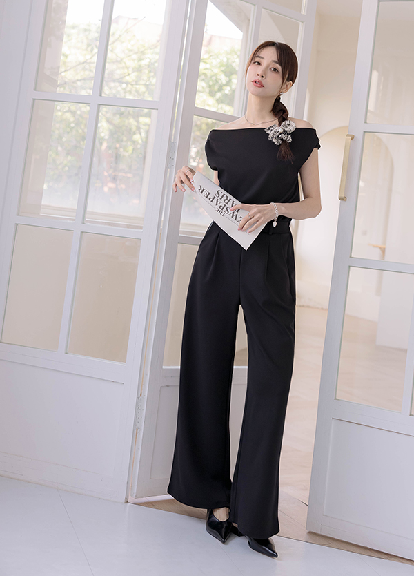 法式垂領連身褲