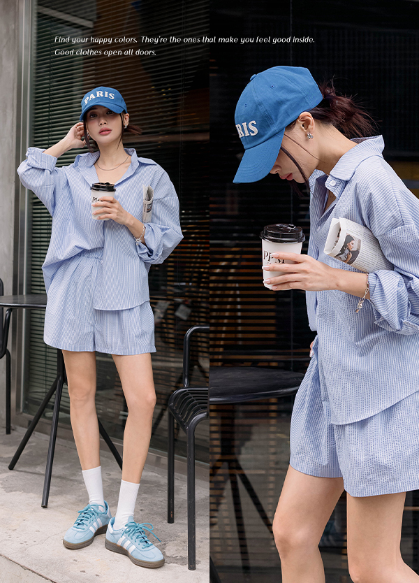 小歐美直紋套裝