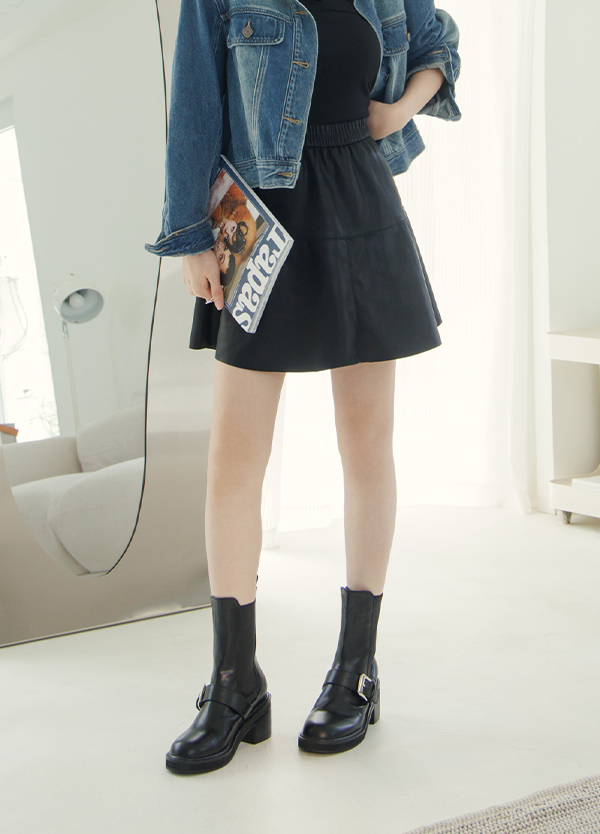 細皮帶水洗短裙