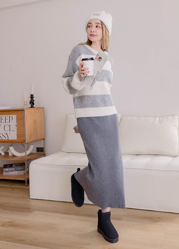 顯瘦直紋針織裙