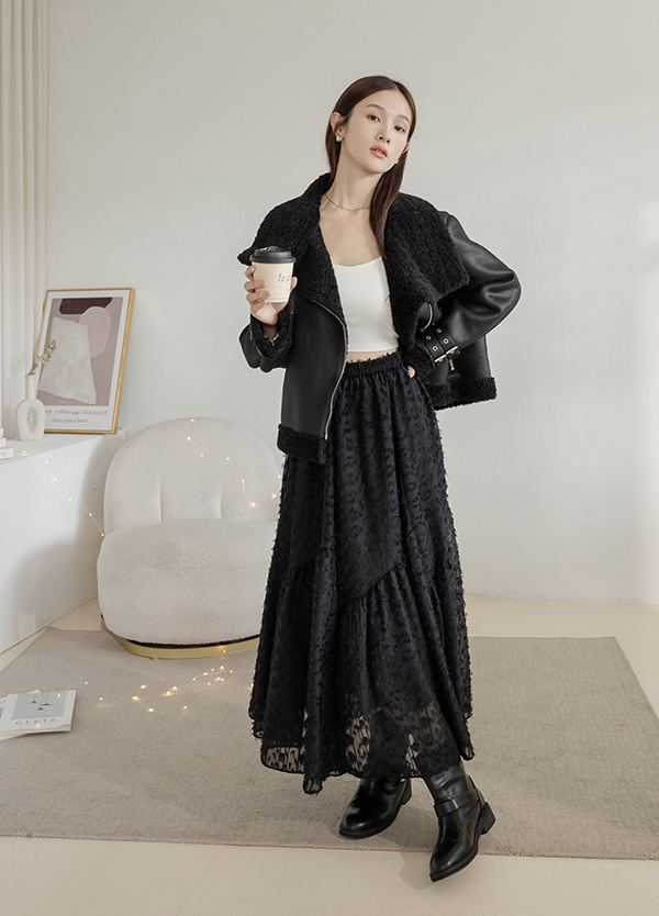 黑菱格皮革短裙