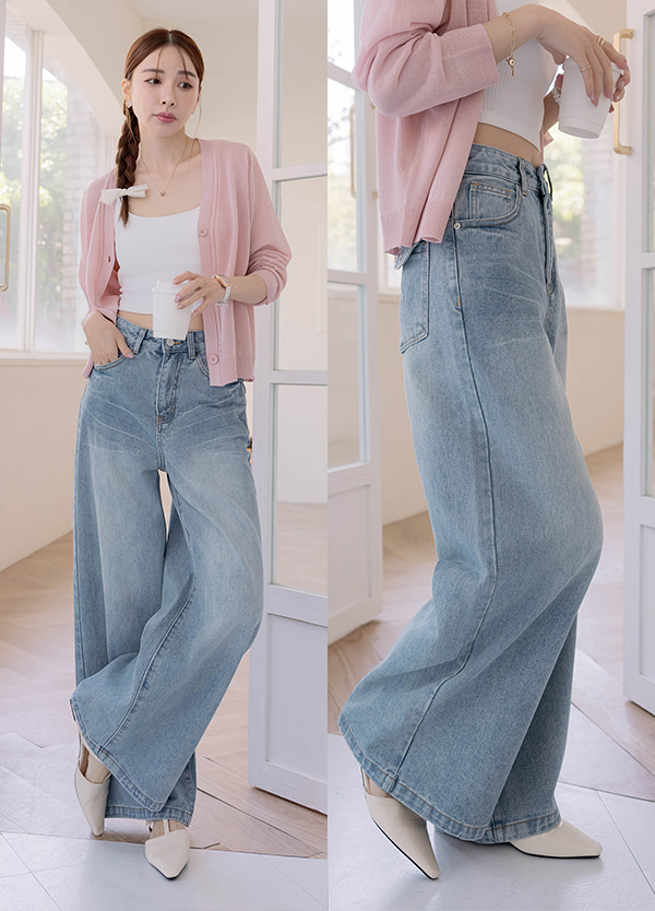 貓抓刷色牛仔寬褲
