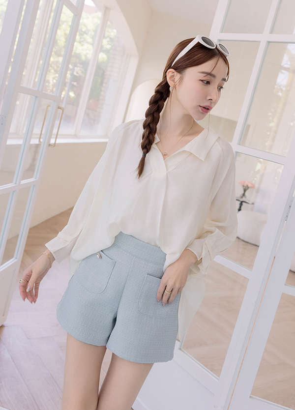真絲感高訂上衣