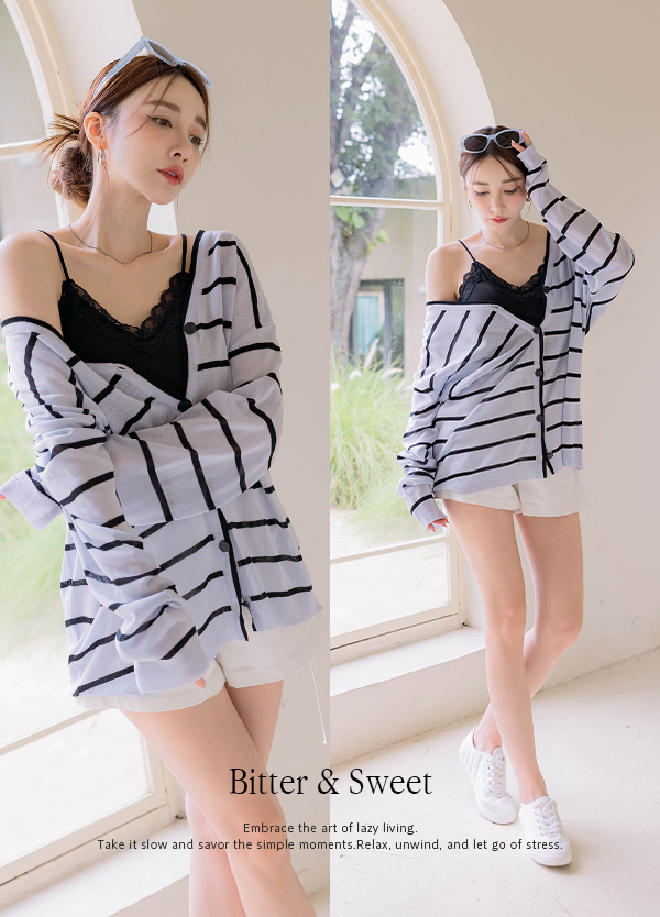 灰藍橫紋涼針織罩衫